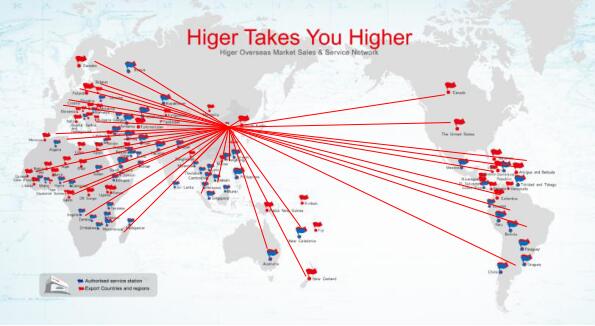 海格客车已在欧洲、中东、非洲、东南亚、美洲和俄罗斯等94个和地区建立了强大的经销和服务网络,其中海外专业的营销和服务团队近300人、海外经销商和服务站近100家。凭借优良的产品和完善的服务,赢得市场的认可。