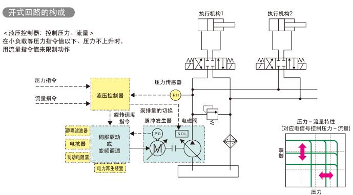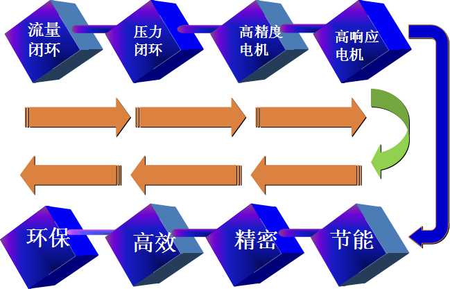 优势及特点:伺服泵控系统它是突破传统设计理念,把PQ开环控制转为闭环控制,用高精度高响应的永磁同步电机代替异步机,高响应、高精度,节能环保。