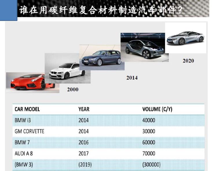 湿压法是将经过树脂浸渍的碳纤维编织物在润湿的状态下置入三维压模中,然后进行压型和硬化处理。这样,就省去了HP-RTM中所需要的精确的预成型体。混压法是将树脂浸渍的碳纤维编织物在润湿的状态下和薄钢板一起置入压模中,然后进行压型和硬化处理,形成钢和碳纤维的混合材料部件。这种混合材料部件的重量很轻,却能够提供大程度的刚度和优秀的碰撞性能。两种流程都通过优化的生产工序实现了在极短的时间内低成本、大规模地生产碳纤维部件,每天多可达数千件。