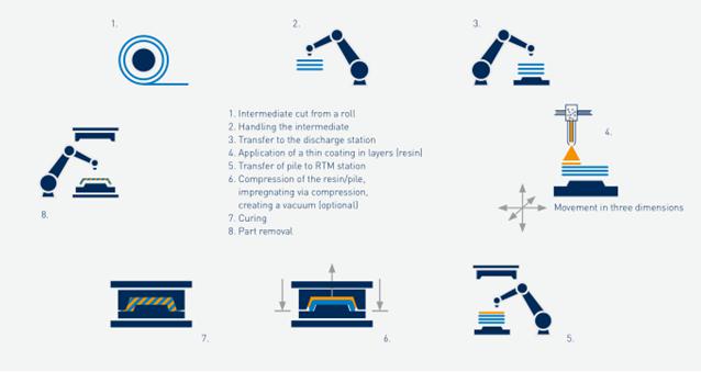 KraussMaffei介绍的湿式模压成型工艺流程图