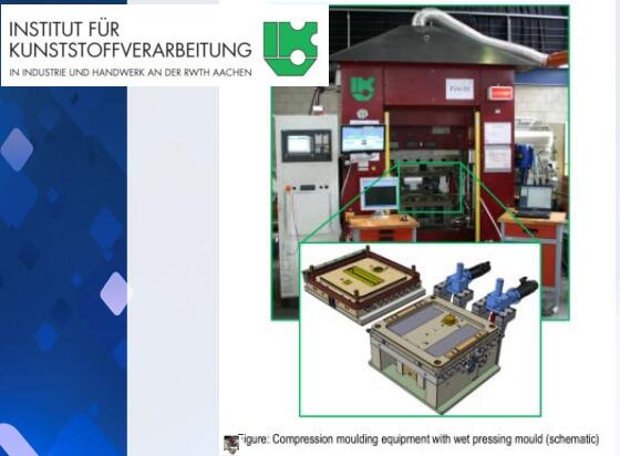 德国 IKV 实验室展示的用于湿式模压的压机和相应的模具