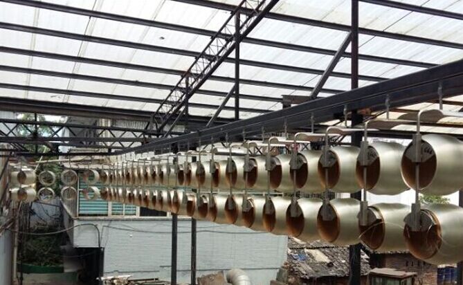 至诚长远公司此次安装的悬挂链输送设备根据合理的工艺线路,以理想的速度实现车间内部、车间与车间之间连续输送成件物品达到自动化、半自动化流水线作业的理想设备。可在三维空间作任意布置,能起到在空中储存作用,节省地面使用场地。