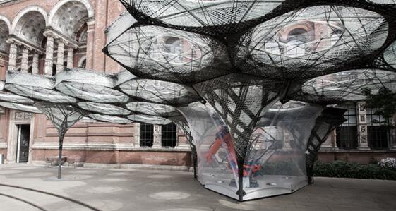 2016 年 6 月 17、18 日两天,伦敦维多利亚与艾伯特博物馆的参观者将亲眼目睹 KUKA 机器人用碳纤维和玻璃纤维制造纤维复合元件。这种轻质材料便是建造“丝翅展亭”(Elytra Filament Pavilion) 顶棚结构所使用的材料。多位名人嘉宾已宣布会光临这场表演。