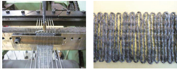图8:左:rC短纤纱用作纬纱,面临着旋转90°的挑战。右:窄幅面料(© Gerster TechTex)