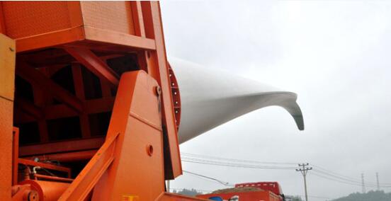 据了解,这种风电机组叶片每片长达53米、重量达10余吨。由于运输叶片对公路要求极高,转弯半径特别大,要想将这批“巨无霸”安全运抵海拔1300米的双溪乡草山并不容易,必须使用车厢可以自行调节扭动的专用车辆,确保运输安全。