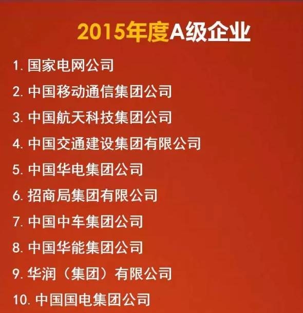 7月20日,国务院国资委正式发布《2015年度和2013-2015年任期企业负责人经营业绩考核A级企业名单 》。中车取得"双A"成绩。在“2015年度A级企业”榜单上,共有46家央企入围,中车位居第7名;在“2013-2015年任期A级企业”榜单上,共有42家央企入围,中车位列第20位。