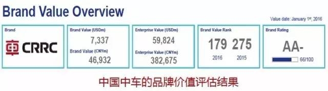 此前,在着名品牌评价机构Brand Finance发布的2016“品牌500强排行榜”上,中车位列第179位。