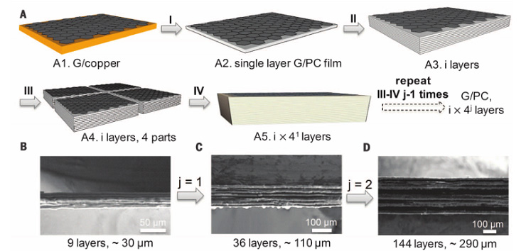 图1 用对齐的半无限大的CVD石墨烯来制备 G / PC复合材料