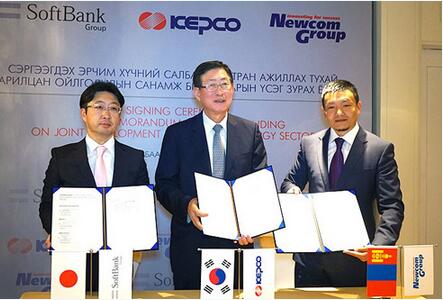 参加备忘录签约仪式的有软银集团CEO项目室兼战略策划室室长三轮茂基、韩国电力公司社长赵焕益和Newcom LLC的Enkhbold Nyamjav。
