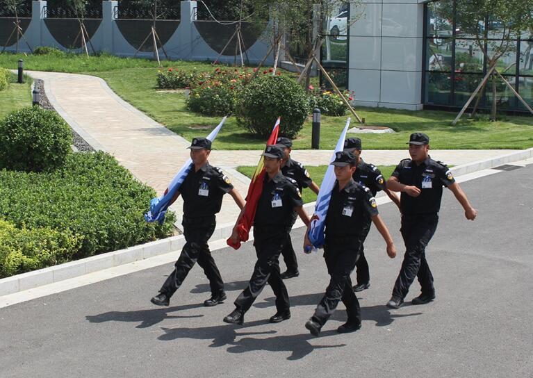 7月26日在中安信5100吨碳纤维项目投产升旗仪式上,旗手步伐整齐进入会场。