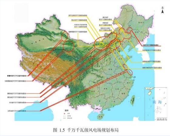 七个千万千瓦级风电基地规划加上其他省区的规划容量到 2020 年达到 1.5 亿 kW,到 2030 年有 望达到 3.2 亿 kW。