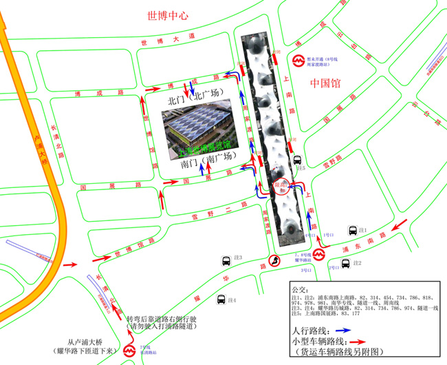 地铁7号线或8号线“耀华路”站4号口,地铁13号线“世博大道”站2号口