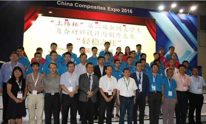 本届展会推出的“上纬杯”第二届大学生复合材料设计与制作大赛以“轻稳之柱”复合材料设计方案为赛题,共吸引了来自21所高校的49支代表队参赛。比赛现场时而欢声四起,时而掌声雷动,一张一弛间充分展示了年轻的血脉喷张与求知好胜。经过紧张激烈的现场测试和海报展示,共决出设计方案一等奖1名,二等奖2名,三等奖3名;海报评比一、二、三等奖各1名。