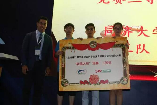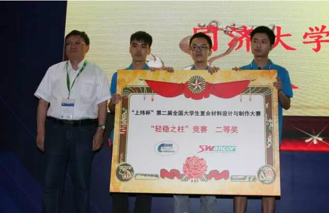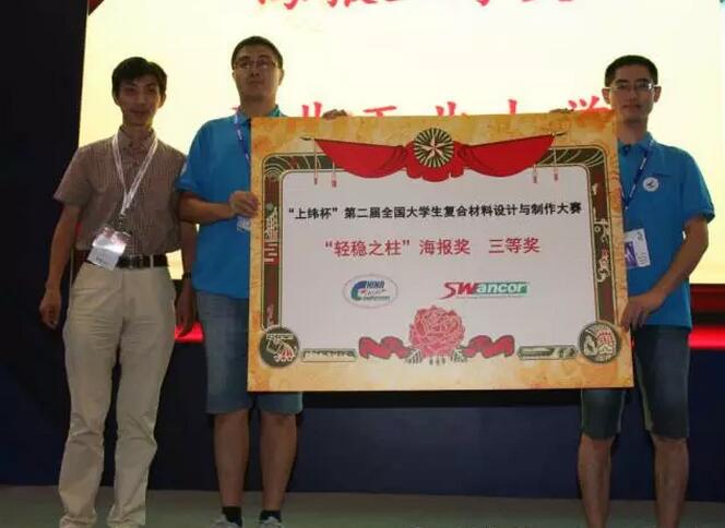 经过8月31日和9月1日两天紧张激烈的现场测试和精彩绝伦的海报展示,本次“上纬杯”第二届“大学生复合材料设计与制作大赛”共决出“轻稳之柱”设计方案竞赛一等奖1名(奖金3万元),二等奖2名(奖金2万元),三等奖3名(奖金1万元);海报评比一等奖(奖金3千元)、二等奖(奖金2千元)、三等奖(奖金1千元)各1名。他们分别是: