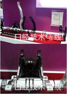 日本大赛璐-赢创公司(Daicel-Evonik)在2013年9月25~27日于东京有明国际会展中心举行的“电动汽车开发技术展”上,展出了戴姆勒公司梅赛德斯·奔驰品牌新款“A-Class”的转向悬挂梁(Steering Hanger Beam)。该部件使用大赛璐-赢创销售的德国赢创(Evonik)生产的PA(聚酰胺)粉末“VESTAMELT”、采用铝合金和树脂的嵌入成型加工制成,提高了接合强度。