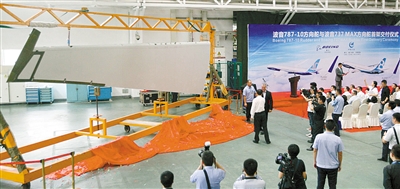 昨日,波音公司与中航工业成飞民机在成都举行了交付仪式,中航成飞民机向波音公司交付两种全新机型的架方向舵,一种是波音787-10驾方向舵,一种是波音737MAX驾方向舵。成飞民机为波音787客机方向舵的唯一供应商,在上空飞来飞往的波音787系列客机都装载有调控方向系统的“成都造”重要部件。