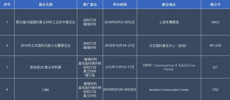 联洋新材下半年展会一览表
