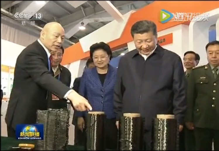 2016年10月19日,北京解放军装甲兵工程学院,第二届军民融合发展高技术成果展在此展出。习近平总书记、李克强、张德江、俞正声、刘云山、王岐山、张高丽等政治局常委和在京政治局委员、书记处书记,国务委员以及军委委员参观了展览。江苏恒神股份有限公司应邀在显着位置布展,恒神公司董事长钱云宝为习近平总书记介绍碳纤维系列产品。