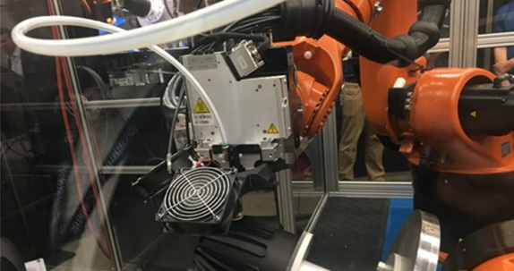 ——Stratasys机器人复合材料3D验证机,拥有6轴机器人和2轴旋转定位器。它设计为打印复合材料,诸如热塑性碳纤维复合材料。机床与西门子联合开发。公司表示运动零件的范围更多地是由里到外地被制造而不是逐层制造。
