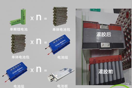 从上图,我们可以看出整个电池板由众多锂电池组成单体电池包,电池包组成电池组,再由电池组构成电池板。看似简单,但实际需要解决很多连接和散热的问题。