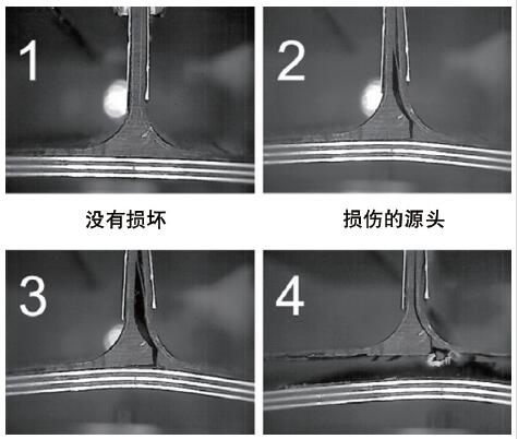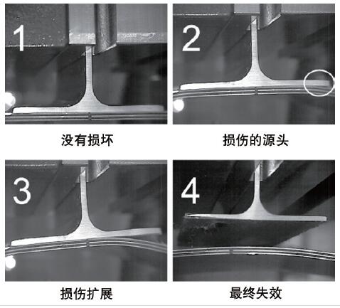 飞机上一个常见的加强蒙皮部分的设计特点,是把加强筋和蒙皮强力粘结在一起。这在金属飞机上已成功应用多年。这些粘结件通常由铆钉来支撑,因为我们对粘结剂并不能完全信任。在测试由碳纤维增强塑料制成的加强筋时,Sofia Teixeira de Freitas 博士发现粘合剂粘结体并不是薄弱的环节,所以这可能是一个很令人惊喜的发现。