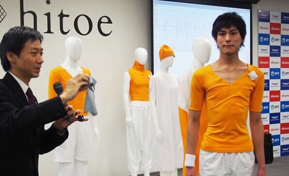 东丽和NTT一直以“hitoe”品牌推进新材料的共同开发。新材料使用了渗透通电高分子树脂的聚酯树脂,以读取体表的微弱电气信号。监测心电图的产品方面,在专用内衣上安装了4处hitoe制作的电极。
