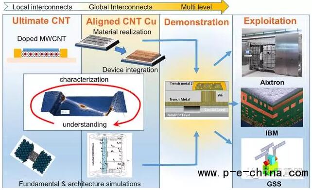 2016年1月,欧盟启动为期2年的“碳纳米管复合材料互连”(CONNECT)项目,研究可用于集成电路互连的碳纳米管(CNT)和金属-CNT复合材料,以及配套的全新CNT互连架构。CONNECT的独创性在于研发和制造可在垂直互连顶端的CNT基水平互连,重点放在对其电性能和热传输性能的完整表征和仿真。