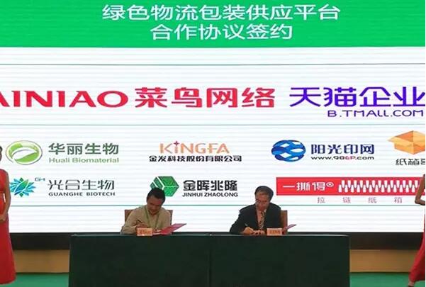 2016快递 "后一公里" 峰会上月在京举行,金发科技股份有限公司与阿里巴巴旗下菜鸟签订了绿色物流包装供应战略合作协议。