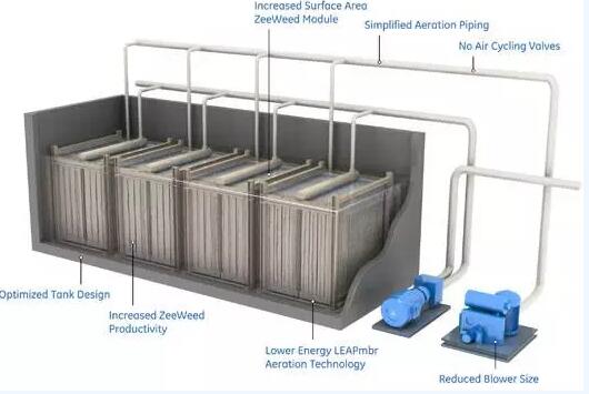 ZeedWeed?膜生物反应器(MBR)工艺是GE公司的技术,实现了活性污泥法与超滤膜技术的完美结合。该工艺利用ZeeWeed?中空纤维膜替代了传统活性污泥法的二沉池和三级处理中的多介质过滤或者超滤膜,一步达到三级出水要求或反渗透(RO)系统的进水水质要求。具有强化营养物去除(ENR)和生物营养物去除(BNR)功能的ZeeWeed?膜生物反应器通过优化生化反应器的设计达到生物脱氮除磷的目的,以满足严格的水质标准。该技术适用于市政和工业废水,以及采用更严格排放标准的新建水处理厂、现有水处理厂的改扩建。