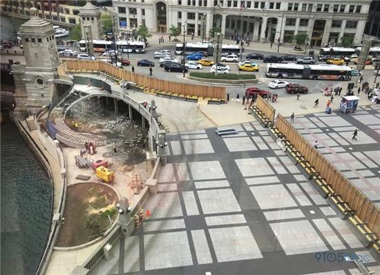 目前苹果公司已经开始动工,近几周相继拆除了旧的建筑物,日前有果粉共享了新的图片。从图片上看,施工进度相对比较快,已经稍显苹果零售店的雏形,或许还要再等上几个月才能够更多明显的痕迹。