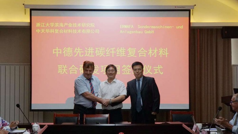 洽谈会上,滨海院常务副院长毛义华教授、德国ERMAFA公司总裁Hartmann博士、天津中天华科复合材料技术有限公司董事长包俊成教授代表三方签署合作协议。按照协议,三方将在研究院成立先进复合材料成型技术工程中心,全面引入德国在碳纤维材料研发方面的先进技术与浙江大学在新材料领域的研发成果,在先进碳纤维等新型材料的研发及产业化开展全方位合作。