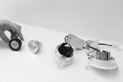目前的市场上,石墨烯主要被用作散热及导电材料(图中黑色部分),可以让灯具、笔记本电脑、手机等产品的性能大大提升。施辰静 摄