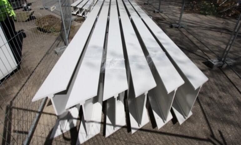 BIJL型材公司的玻钢梁被用来替换现有的木质结构。现有的主要胶合木板结构梁可以被保留下来。对于BIJL型材来说这意味大的复合材料工字梁的制造。下环梁使用的拉挤I- 780300mm梁超过26米。垂直梁使用的拉挤I-240 x150mm梁超过23米。总共使用达40吨的拉挤复合材料型材。