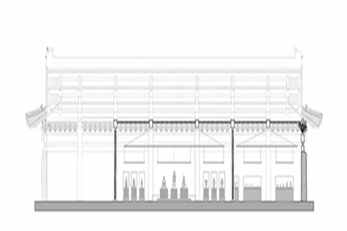 为了实现这一设计目标,灯光设计师请北京碧岩特种材料有限公司和湖州氪力新材料科技有限公司为慈宁宫定制了碳纤维灯架和悬吊灯具系统。碳纤维材料,“外柔内刚”,质量比铝轻,但强度却高于钢铁,曾被广泛应用于军事航天领域。此次定制的网架悬挂系统是将碳纤维型材与固定件组成的架体悬挂于各殿上方,用于灯光照明及布线。整体系统要求在不破坏古建筑的情况下,安全稳定地实现。架体力求在实现功能的前提下简单、可靠,大限度的减少固定点及拉伸点。使整个架体看起来无沉重感,固定点位无重复性,弱化人们视觉感受。