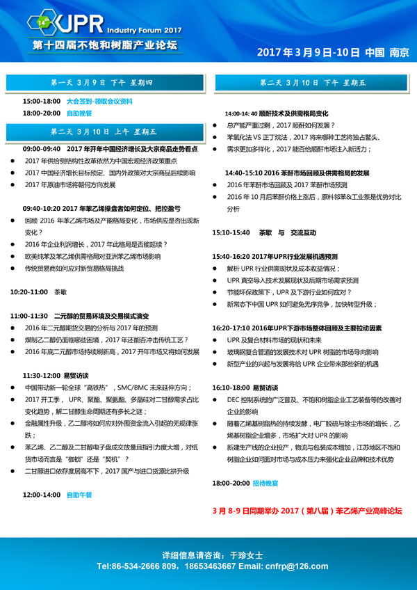 为了了解 2017 年 UPR 供需格局变化及几大主体下游行业发展带来的机遇与契机。易贸亲力打造 2017(第十四届)不饱和树脂产业市场论坛,特此致凼,诚邀您的参与!