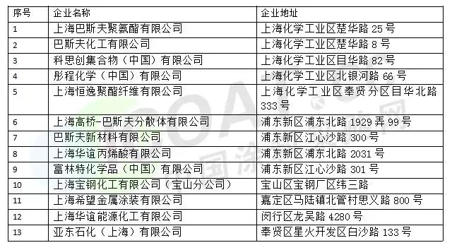 巴斯夫、科思创、上海华谊等多家企业被环保局列为重点排污企业