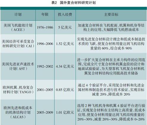 数十年来欧美发达实施了由政府和军方组织、高校与科研机构参加的多个复合材料发展计划。这些计划的实施突破了航空复合材料结构设计、材料、工艺等关键技术,推动了复合材料技术的迅速发展,起到了显着的效果。
