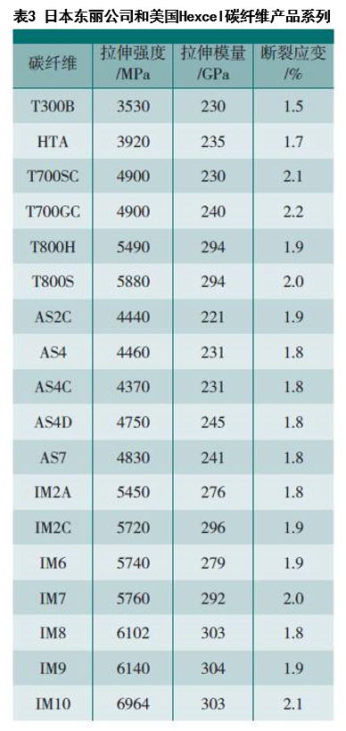 日本和美国等发达的碳纤维已经形成了系列化的生产供应体系。具代表性的是日本东丽公司形成了从T300 到T1000 的T 系列碳纤维产品,东丽公司的碳纤维产品主要分为3 个系列:T 系列(T300、T400、T700、T800、T1000)碳纤维、M 系列碳纤维和MJ 系列碳纤维。美国Hexcel 公司20 世纪70 年代开发了AS 系列PAN 基标准模量碳纤维(包括AS4、AS4C、AS4D 及AS6 等碳纤维),还开发了IM 系列PAN 基碳纤维,形成了IM6、IM7、IM8、IM9、IM10 等系列产品。