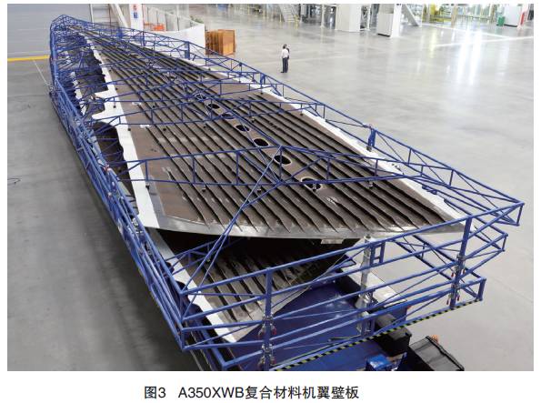 空客A350WB 复合材料机翼“T”形加筋壁板和波音787复合材料机翼采用“工”字型加筋壁板等。大型飞机复合材料机翼壁板的制造:固化成形方式,考虑到经济性和质量可靠性一般采用筋条和蒙皮进行胶接共固化,也有采用共固化和二次胶接的成形方式;蒙皮铺层采用自动铺带技术;长桁组装采用精确的定位技术;固化模具结构设计,重点考虑温度场的均匀性及热膨胀的影响,模具材料一般为殷瓦钢。
