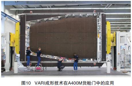 RFI 成形工艺即树脂膜渗透成形,是复合材料液体成形工艺的一种。其主要原理是在预制体与模具之间按结构的要求铺设树脂膜,固化过程中树脂膜受热熔化,在真空及压力作用下树脂液体渗透到预制体相应部位并完成固化成形。RFI 技术已用于A380 的机翼后缘和后压力隔框,波音787 机身的大部分隔框等飞机结构。