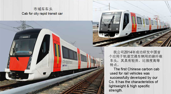 公司2014年成功研发应用于轨道交通车辆用的碳纤维车头,其具有轻质、比强度高等特点。