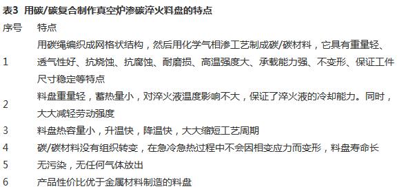 3.用碳/碳复合制作真空炉渗碳淬火料盘的特点