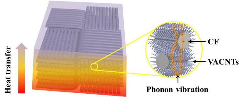 图1. 碳纳米管阵列-碳纤维/碳化硅(VACNT-CF/SiC)复合材料结构示意图