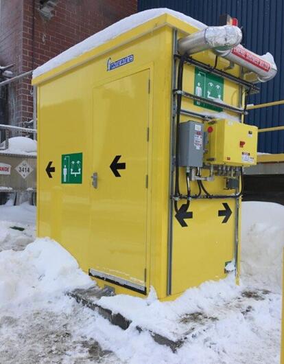 该公司解释,这种安全屋有两种主要的型号:封闭的方形或矩形的ESS淋浴房,尺寸为122 x122或122 x244厘米,方形型号是作为紧急淋浴和洗眼装置的理想选择,可以抽取源于当地的软化水。更大的矩形ESS提供了额外的空间来容纳贮水箱和取暖设施。