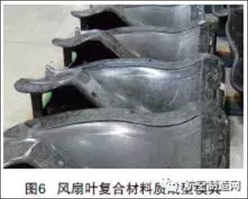 随技术的发展和进步,国外出现了采用复合材料材质的模具替代金属成型模具的趋势,其优点为采用复合材料材质加工制造的模具的膨胀数与复合材料零件的膨胀数基本一致,成型的零件具有更。如GE90-94、GE90-115B、GEnx-1B、GEnx-2B复合材料风扇叶片均采用了HEXCEL公司的HexTOOLM61制造了复合材料材质的模具替代了金属模具,见图6。