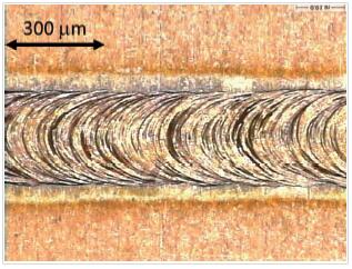 图4.以高达 42m/min的速度形成的铜(99.95% 铜)焊缝。