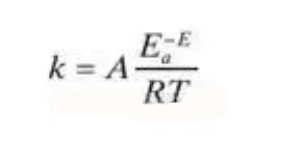 阿亨尼丝方程式中的k是反应的速度常数,Ea是作用能,T为绝对温度,单位为开尔文,R为气体常数,A为碰撞频率因子。