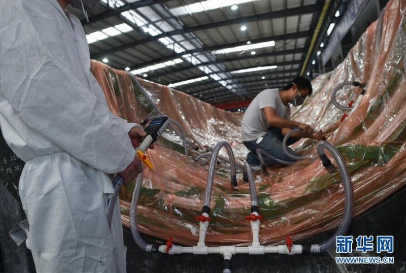 3月5日,在东方电气风电(凉山)有限公司,工人对风电叶片进行真空灌注。从2015年开始,四川大凉山依托千万千瓦风电基地项目,积极引进风电装备制造企业及配套企业,目前已建成具有完整风电产业链的新工业园区——凉山(德昌)风电装备制造示范基地,打造风电装备制造集群,年产值达50亿元,吸纳当地剩余劳动力2000余人,同时带动当地基础设施建设和大件物流发展,在绿色发展和产业扶贫两方面收获成效。