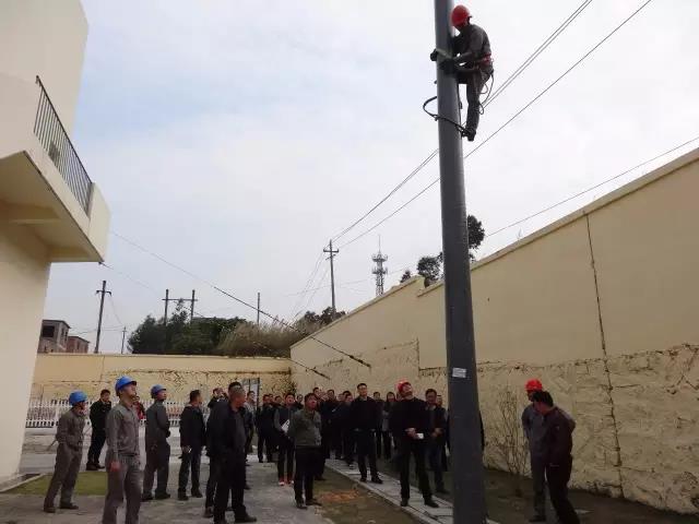 此外,与会专家们还到南安市电力公司岭兜实训基地,对泉州亿胜电气设备公司配合试点组立完成的复合电杆进行现场观摩。为了使大家对复合电杆应用有更直观的了解,南安市电力公司现场抽调施工人员对复合电杆进行登杆测试,并采取淋湿杆身的方式,模拟雨天使用工况进行再次登杆测试。