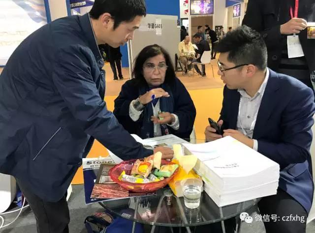 方鑫石材相关的多款产品受到了很客户的青睐,很多客户慕名咨询,其中也包含了很多国外客户,我们的销售及技术人员也进行了热情的讲解。